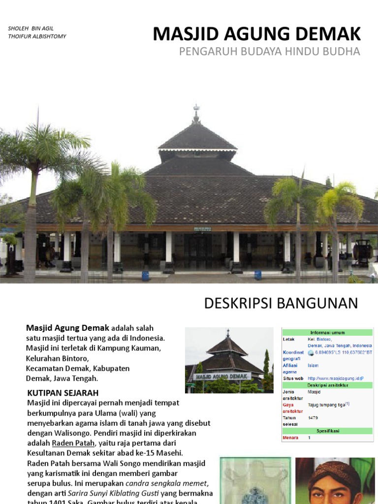 Gambar masjid agung demak beserta penjelasannya. Sejarah Masjid Agung Demak Tonggak Berdirinya Kerajaan Islam Pertama 15 Peninggalan Kerajaan Demak Penjelasan Dan Gambarnya Best Gambar Masjid Agung Demak Beserta Penjelasannya. Sekilas sejarah berdirinya Masjid Agung Demak Boleh dikata sejarah berdirinya masjid Agung di Demak adalah berhubungan rapat dengan sejarah berdirinya Kerajaan DemakSebab sudah merupakan tradisi bagi umat Islam semenjak zaman Nabi Muhammad SAW bahwa berdirinya negara Islam adalah didahului atau dibarengi dengan didirikannya masjid. Masjid tersebut terletak di Kampung Kauman Kelurahan Bintoro Kecamatan Demak Kabupaten Demak.