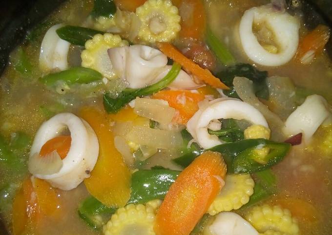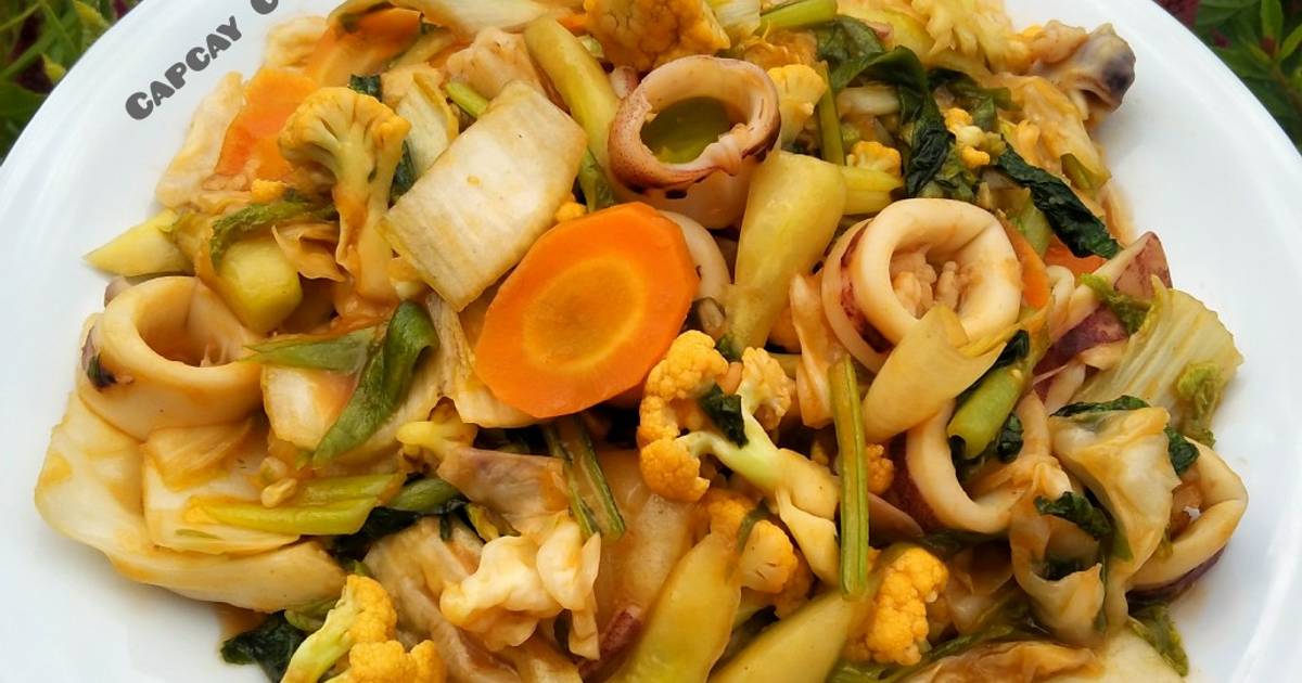 Resep capcay cumi kuah. Masakan capcay ini juga sering kita temukan di restoran chinese food karena memang sesungguhnya resep capcay berasal dari Hokkian Cina yang berarti aneka ragam sayuran. Capcay Kuah Kental Gurih Bahan. Buang kepala dan rebus sebentar untuk kuah kaldu dengan 300ml air Beberapa potongan ayam fillet optional Bunga kol potong-potong wortel iris serong agak tipis Sawi hijau secukupnya.